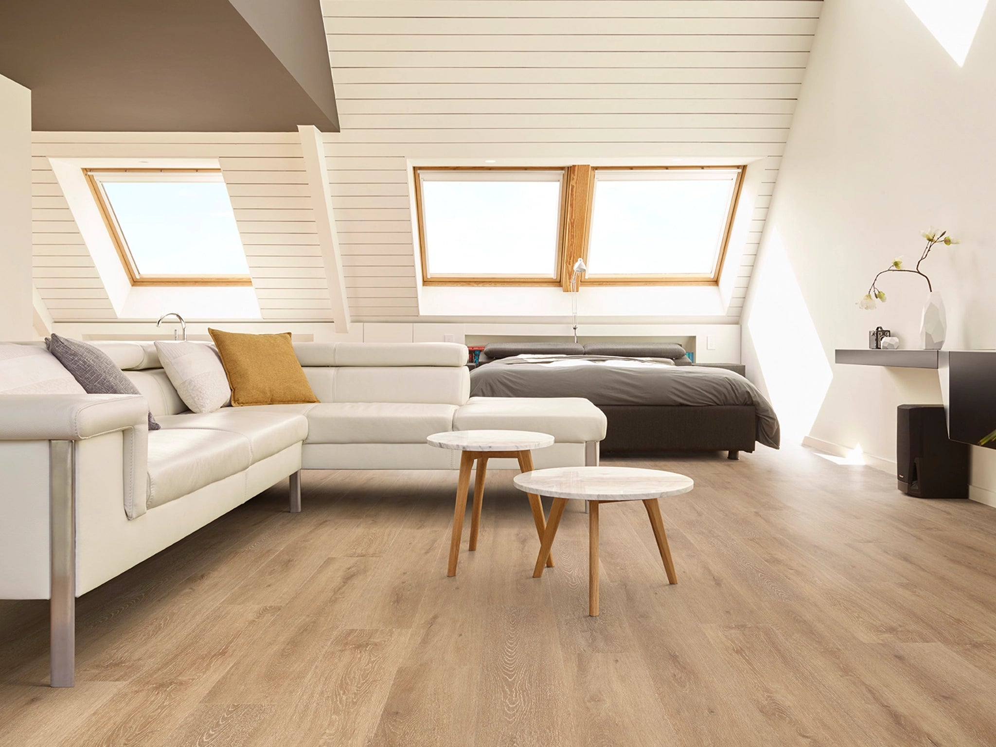 COREtec Naturals offers stunning natural hues form a beautiful range of light through golden designs, in a very forgiving 1.2m long plank to work with any size room.