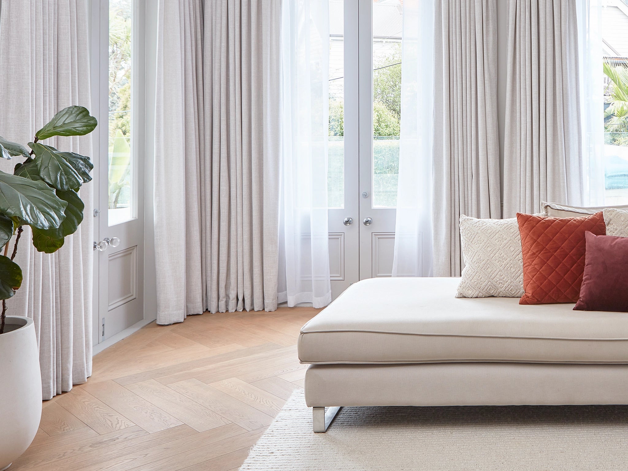 We recommend installing your track at least 10cm above your window, space permitting. This creates the illusion of height in the room as your eye is drawn above the window.